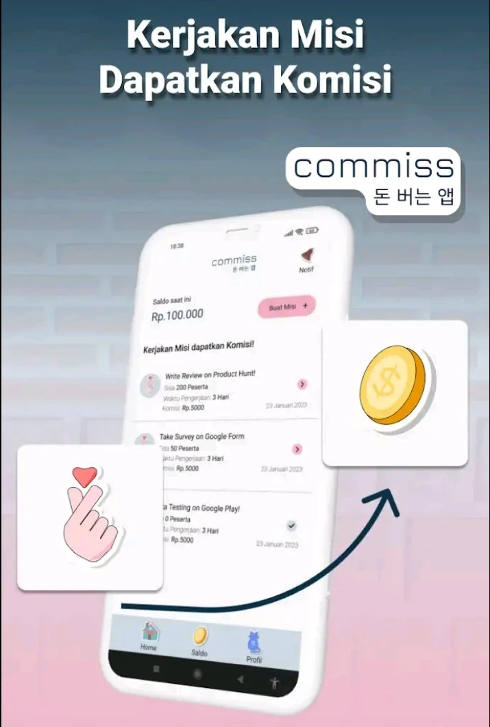 Commiss adalah platform penghasil uang online berbasis aplikasi yang mendukung ekonomi digital dan gigs economy. Dengan misi memberdayakan masyarakat melalui akses kerja fleksibel, Commiss telah membantu ribuan pengguna meningkatkan penghasilan mereka tanpa terikat sistem kerja konvensional.