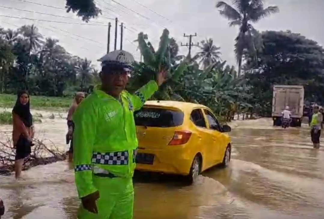 AIPTU Arie Tamara dalam hal ini mengatakan“Pantauan tersebut untuk mengantisipasi kendaraan yang melintas baik pengguna roda dua maupun pengguna roda empat yang bisa mengakibatkan putus nya arus lalulintas di jalan poros tersebut.