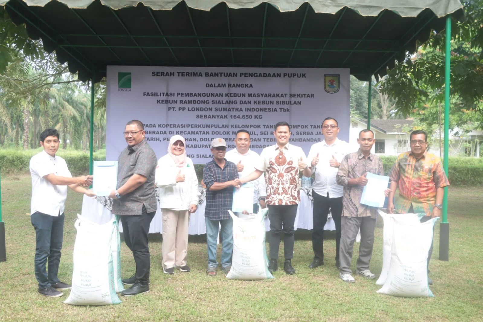 Sergai, SniperNew.id — Wakil Bupati Serdang Bedagai (Wabup Sergai) H. Adlin Tambunan menyampaikan terima kasih kepada PT. PP London Sumatera Indonesia Tbk (Lonsum) atas bantuan pupuk sebanyak164.650 kg kepada 16 Kelompok Tani yang berada di sekitar Kebun Rambong Sialang dan Kebun Sibulan di kecamatan Sei Rampah,