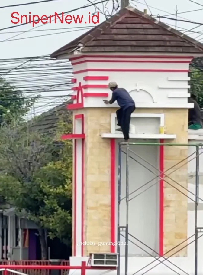 Dalam video pen­dek yang juga dibagikan, tam­pak seo­rang peker­ja ten­gah menge­cat salah satu gapu­ra di wilayah Gunungkidul den­gan garis-garis mer­ah putih. Pria terse­but ter­li­hat bek­er­ja di ket­ing­gian meng­gu­nakan per­anc­ah, menun­jukkan bah­wa per­si­a­pan visu­al untuk menyam­but HUT RI dilakukan secara serius dan ter­struk­tur.