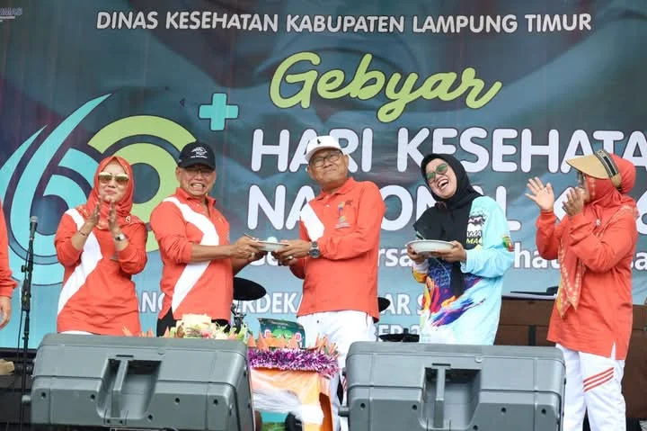 LAMPUNG TIMUR”(SniperNew.id)- Pemerintah Kabupaten Lampung Timur melalui Dinas Kesehatan Kabupaten Lampung Timur menggelar Peringatan Hari Kesehatan Nasional ke 60 yang berlangsung di Lapangan Merdeka Kecamatan Bandar Sribhawono, rabu (04/12/2024).