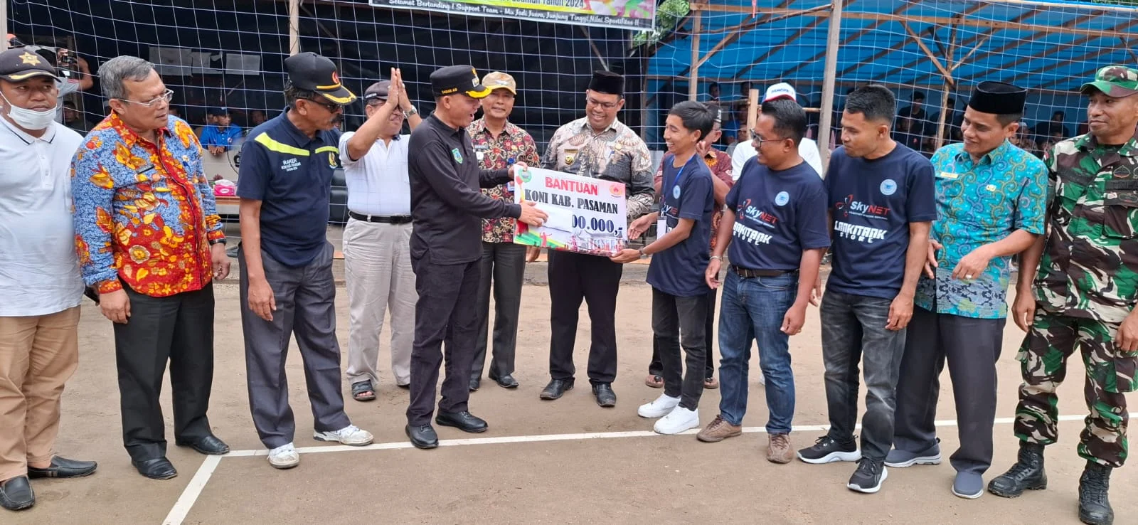 Bupati Sabar AS menyerahkan bantuan KONI sebesar Rp. 10 juta dan pribadi sebesar Rp. 5 juta.