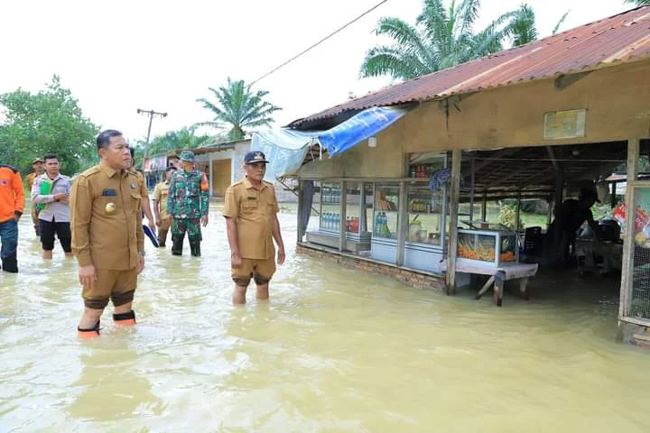 Labura, snipernew.id - Usai Mendengar Kabar Dari Dinas Terkait, Pjs Bupati Labura Tinjau Langsung Lokasi Banjir Menindaklanjuti laporan dan memantau kondisi di lapangan, Pjs. Bupati Labura Mulyono, ST, M.Si bersama Kasatpol PP Singgih Purwoto, S.Sos., M.M, Kadishub Irfan Ashadi Ritonga, SP., M.Si, Kadis Sosial Jhon Ferry, S.STP, MM BPBD dan Jajara Pemerintah Desa Ujung Padang meninjau lokasi banjir yang bertempat di Desa Ujung Padang, Kecamatan Aek Natas. Senin (14/10).