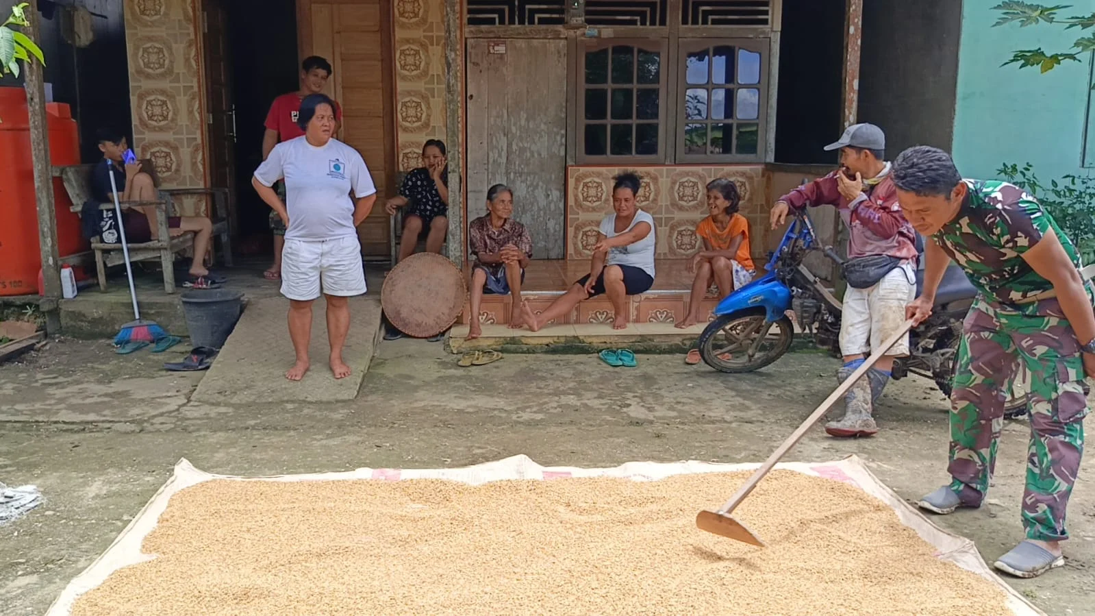 Ibu Marin sebagai pemilik jagung mengungkapkan rasa terima kasihnya kepada anggota Satgas TMMD yang telah memberikan bantuan dalam proses penjemuran dan pengupasan jagung. Kehadiran anggota Satgas membantu mempercepat pekerjaan.(Pendim 1210/Ldk)
