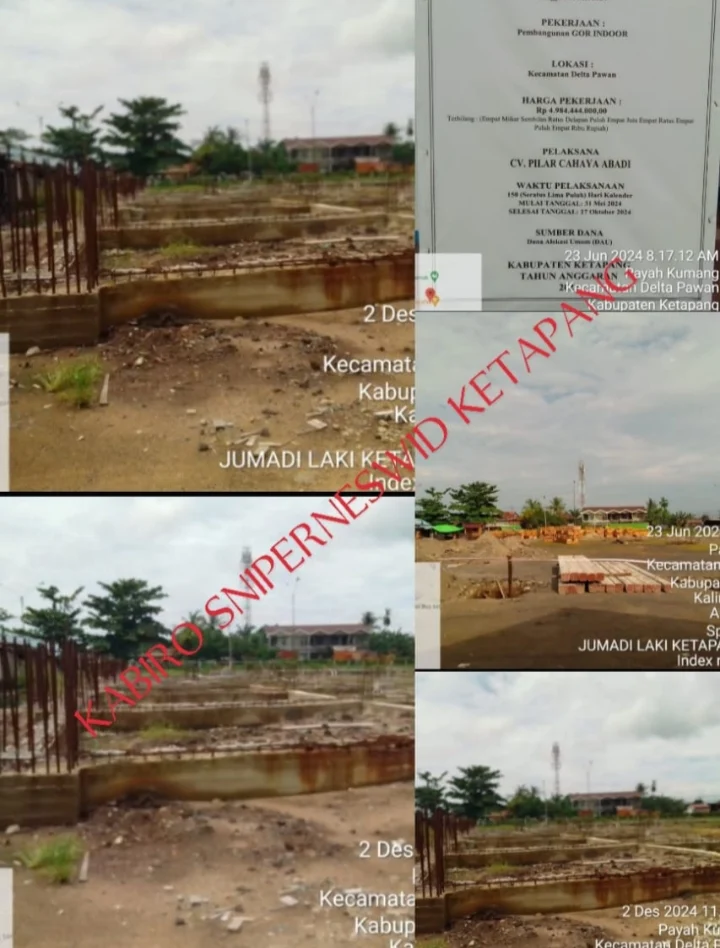 Ketapang, SniperNew.id — Berdasarkan hasil investigasi DPC LAKI kabupaten Ketapang, Kalimantan barat sejak dari tanggal 23 Juni 2024 samapi dengan tanggal 2 Desember 2024 dilokasi kegiatan terlihat pembangunan GOOR INDOOR salah satu kegiatan Dinas Pemuda dan Olahraga ditahun anggaran 2024.
