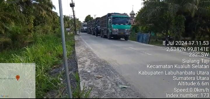 Labura, snipernew.id- Hasil pantauan Awak media dilokasi Pembangunan jembatan yang belum seumur jagung, penghubung antara Kecamatan Kualuh Selatan dan Kualuh Hulu menuju Kecamatan Kualuh Hilir dan Kualuh Laidong tersebut tampak masyarakat bersama team media memantau langsung banyaknya armada pengangkut material sertu dari PT. Duta Cahaya Deli yang bermuatan lebih kurang 40 ton Bebas melintas, belasan armada dengan sistem bergantian pada Senin. (8/7/2024)