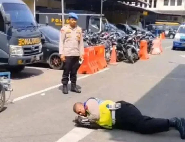 Tak hanya itu, Propam juga memberikan hukuman fisik berupa menggulingkan badan di jalan, sebagai simbol sanksi moral dan pembinaan terhadap pelanggaran disiplin.
