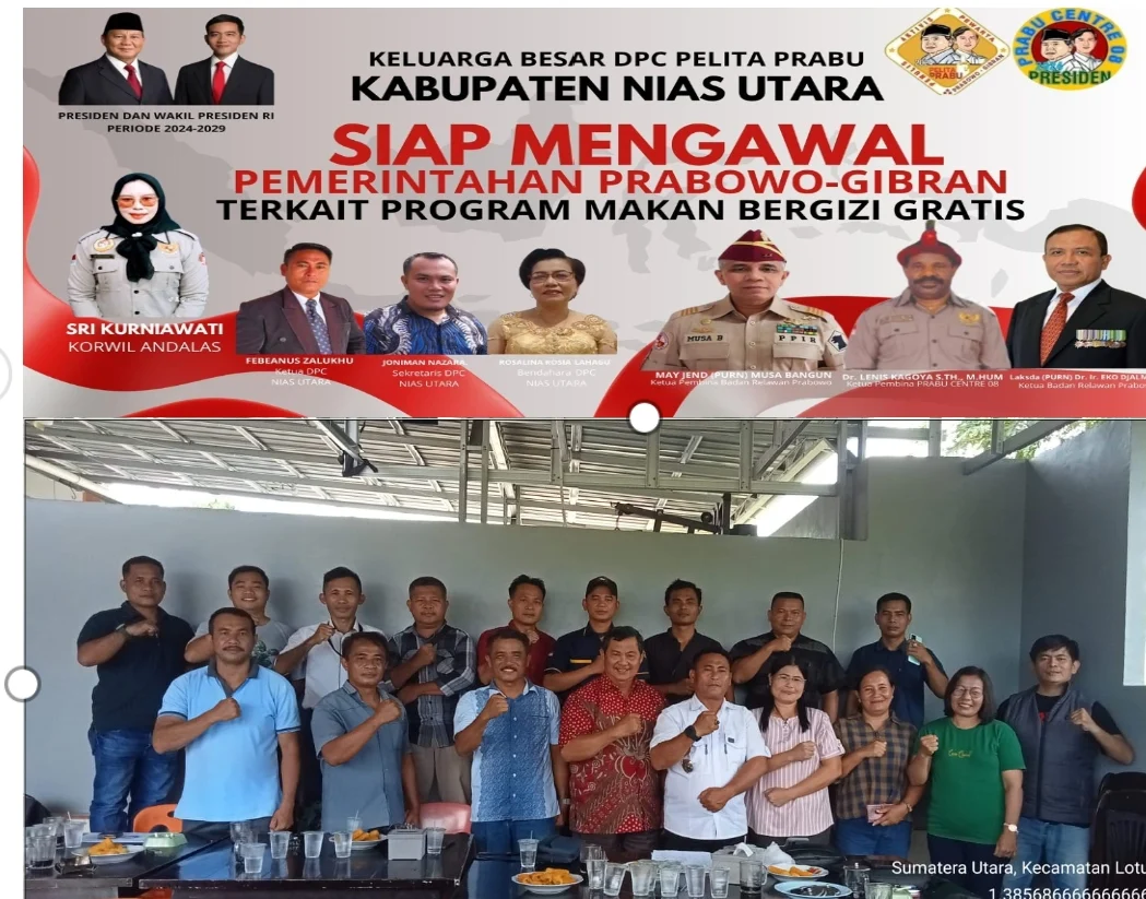 Nias Utara Snipernew.id DPC PELITA PRABU Kabupaten Nias Utara mengadakan pertemuan perdana yang melibatkan pembina, penasihat, pakar, pengawas, ketua, serta berbagai biro di RM NIRA, depan kantor Bupati Nias Utara, pada Jumat, 13 September 2024.