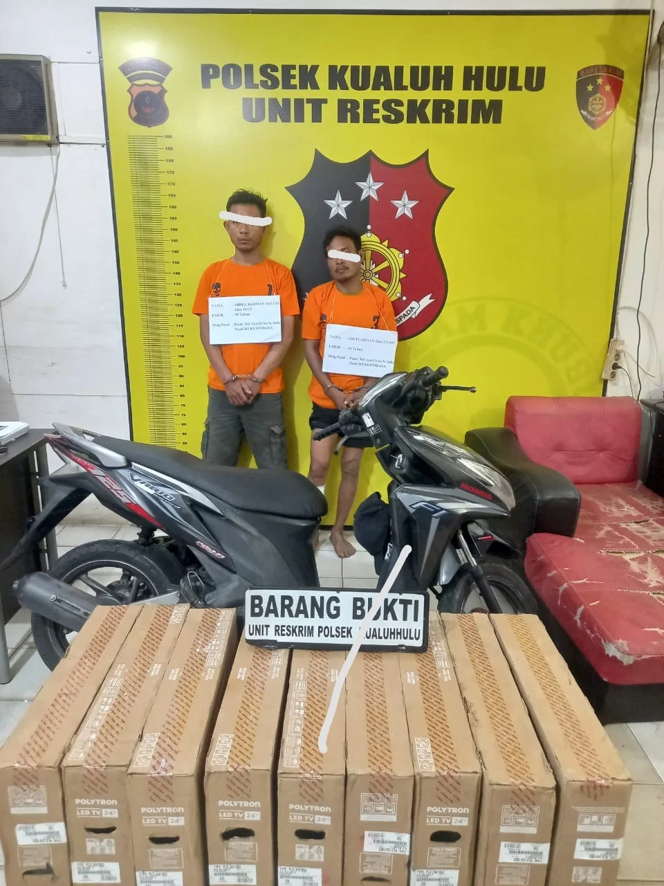 Saat itu tersangka Cepot berusaha untuk melarikan diri, Akhirnya petugas terpaksa mengambil tindakan tegas dan terukur untuk melumpuhkannya. Kini, kedua pelaku berikut barang bukti sepeda motor Honda Vario tanpa plat, dan sembilan unit TV LED telah diamankan di Polsek Kualuh Hulu (Rustina)