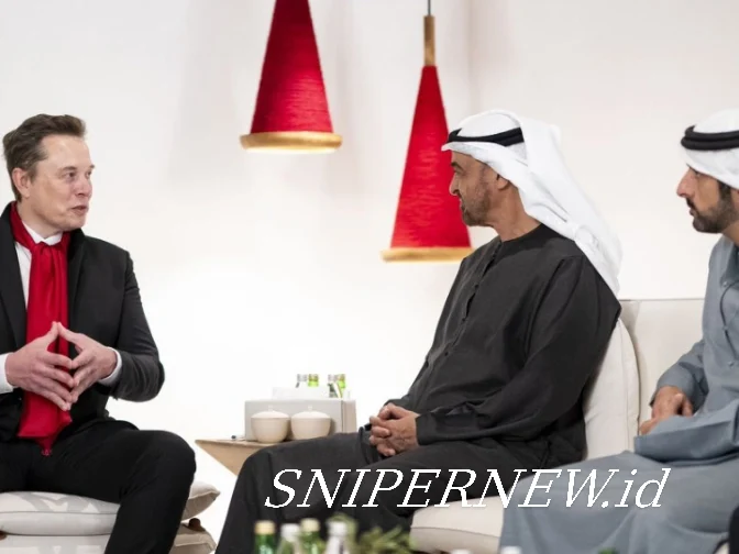 JAKARTA, SNIPERNEW.id — Pen­gusa­ha teknolo­gi dunia Elon Musk dila­porkan melakukan perte­muan den­gan jajaran pimp­inan Uni Emi­rat Arab (UEA), ter­ma­suk Pres­i­den UEA Sheikh Mohamed bin Zayed Al Nahyan. Infor­masi terse­but dis­am­paikan melalui ung­ga­han akun media sosial X (Twit­ter) @cb_doge yang diung­gah pada hari ini, Selasa (23/12/2025).