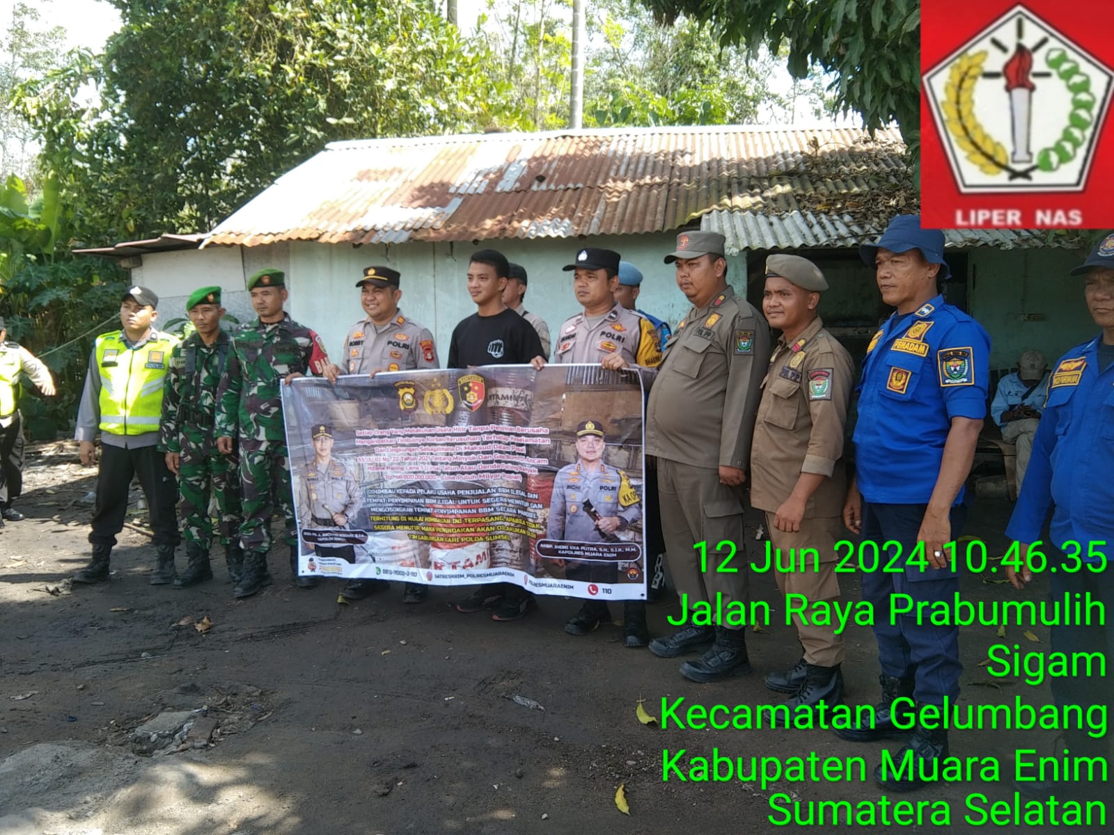 Muara Enim, SniperNew.id ‑Gabungan Aparat Penegak Hukum (APH) Polsek Gelumbang, Koramil, Pol-PP dan Damkar turun langsung ke lokasi gudang BBM ilegal membongkar gudang penimbunan Bahan Bakar Minyak (BBM) ilegal di Desa Sigam gelumbang, Rabu (12/06/2024).