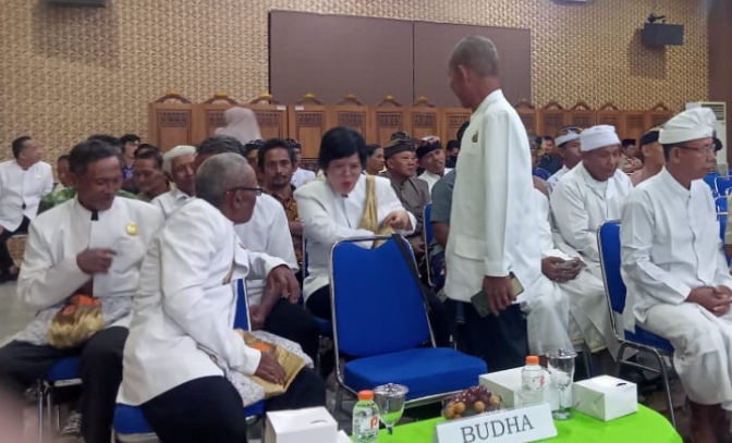 Berdasarkan pan­tauan visu­al pada lokasi kegiatan, para peser­ta tam­pak men­ge­nakan busana adat dan paka­ian keaga­maan mas­ing-mas­ing, mencer­minkan keber­aga­man latar belakang aga­ma dan budaya yang hadir. Kur­si tamu undan­gan telah dis­usun rapi meng­hadap pang­gung uta­ma, lengkap den­gan meja pener­i­ma tamu yang diberi penan­da aga­ma, salah sat­un­ya ter­li­hat bertuliskan “Bud­ha”.