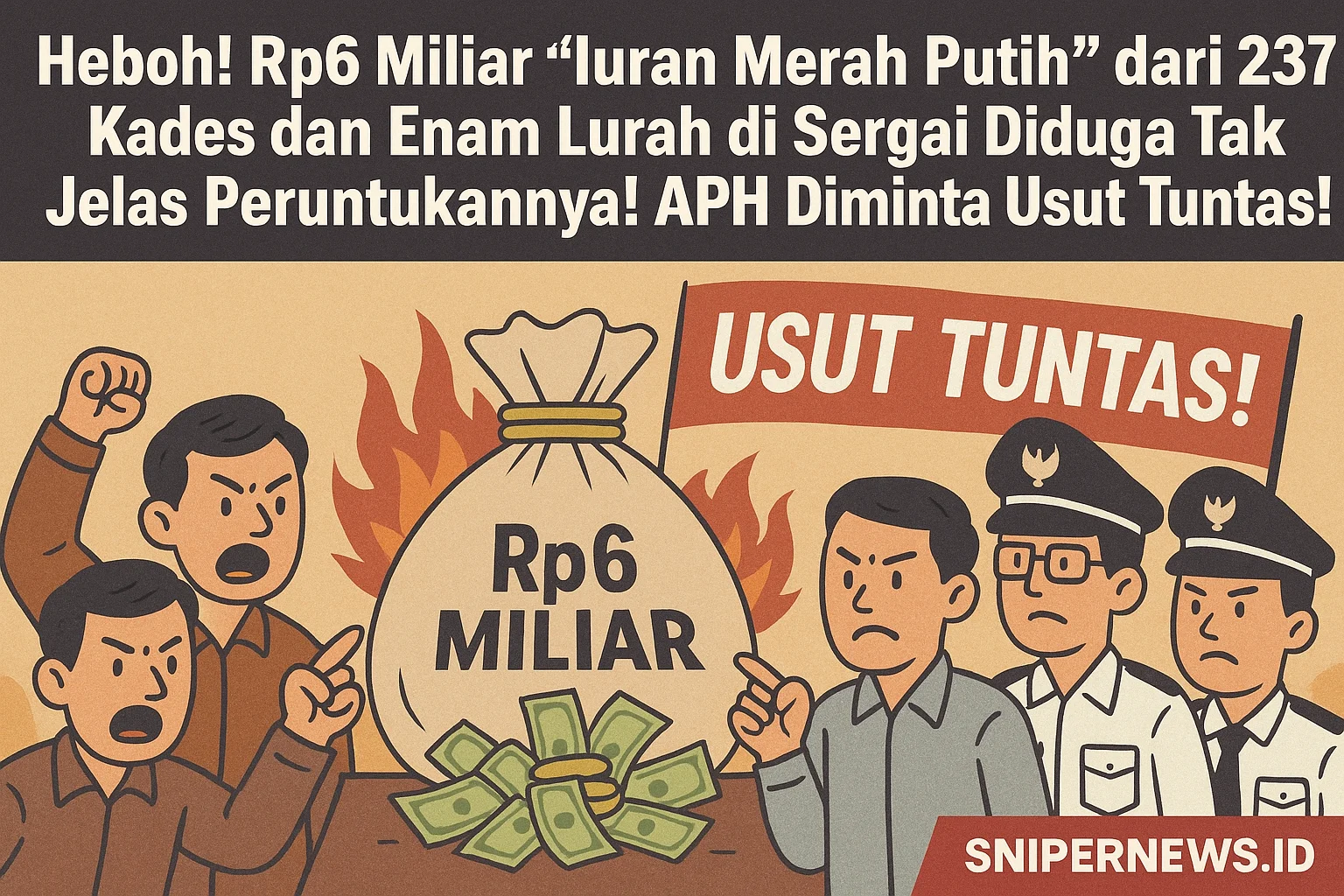 Serdang Bedagai, SniperNew.id - Jagat dunia maya dan masyarakat Kabupaten Serdang Bedagai (Sergai), Sumatera Utara, tengah diguncang kabar mengejutkan: dana yang disebut sebagai “Iuran Merah Putih” Senilai Rp6.075.000.000 diduga dikeluarkan oleh 237 kepala desa dan Enam Lurah tanpa kejelasan penggunaan!l, Jumat 11 Juli 2025.