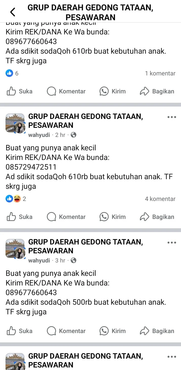 Apabila benar adanya niat sedekah atau bantuan, kami sarankan agar dilakukan melalui lembaga sosial resmi atau kanal distribusi bantuan yang memiliki kredibilitas dan transparansi.