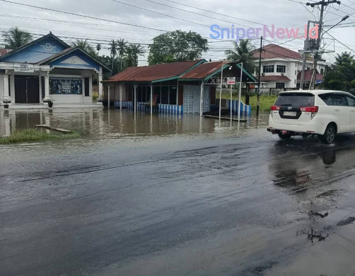 Serdang Bedagai, SniperNew.id — Hujan deras yang mengguyur wilayah Desa Firdaus, Kecamatan Sei Rampah, Kabupaten Serdang Bedagai, Sumatera Utara, pada Senin malam (10/11/2025), menyebabkan genangan air di Jalan Lintas Sumatera (Jalinsum) tepatnya di sekitar Kantor Badan Pertanahan Nasional/Agraria dan Tata Ruang (BPN/ATR) Serdang Bedagai, Selasa pagi (11/11/2025) sekitar pukul 09.00 WIB.