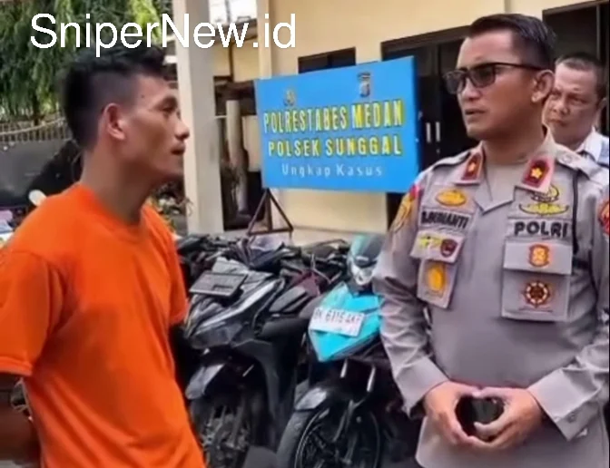 Dalam video lainnya, terlihat pelaku yang sudah diamankan sedang berbicara dengan petugas kepolisian di halaman Polsek Sunggal, Polrestabes Medan. Pelaku tampak mengenakan kaus oranye, sementara seorang perwira polisi memberikan penjelasan terkait proses penanganan kasus tersebut.