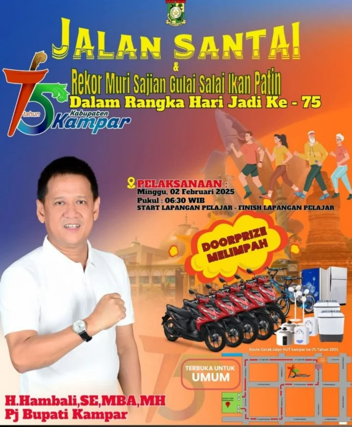 “Ini pengalaman luar biasa! Bisa ikut jalan santai bersama keluarga, menikmati kuliner khas Kampar, sekaligus berkesempatan mendapatkan hadiah menarik. Semoga acara seperti ini terus diadakan setiap tahun,” ujarnya.