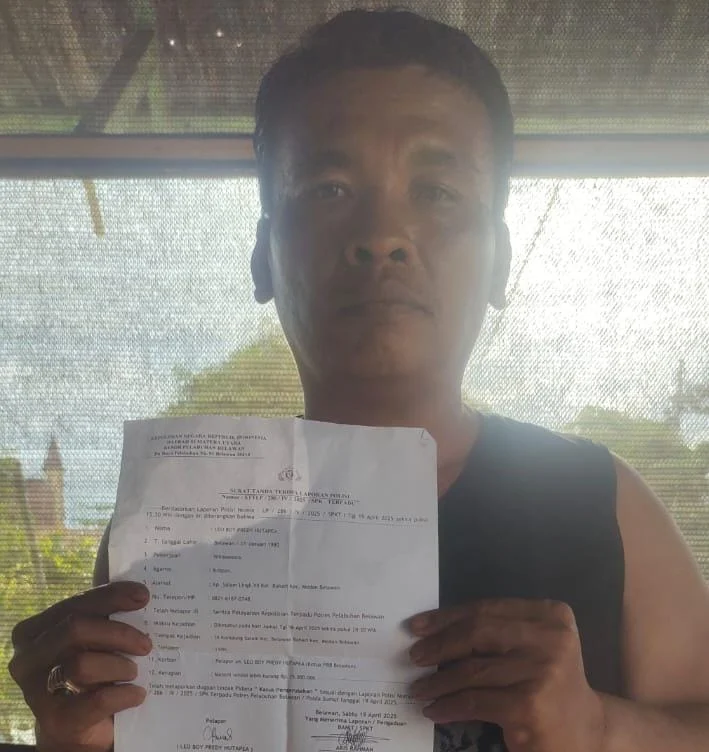 Laporan Polisi nomor: LP/286/IV/2025 SPKT Polres Belawan tanggal 19 April 2025 atas nama pelapor Leo Boy Fredy Hutapea Warga Kampung Salam Lingkungan XII Kelurahan Bahari Kecamatan Medan Belawan yang pada hari ini Senin 28 April sekitar pukul 11.00 Wib Kembali dihubungi juper RD Sijabat untuk hadir ke Polres guna dimintai keterangan lebih lanjut.