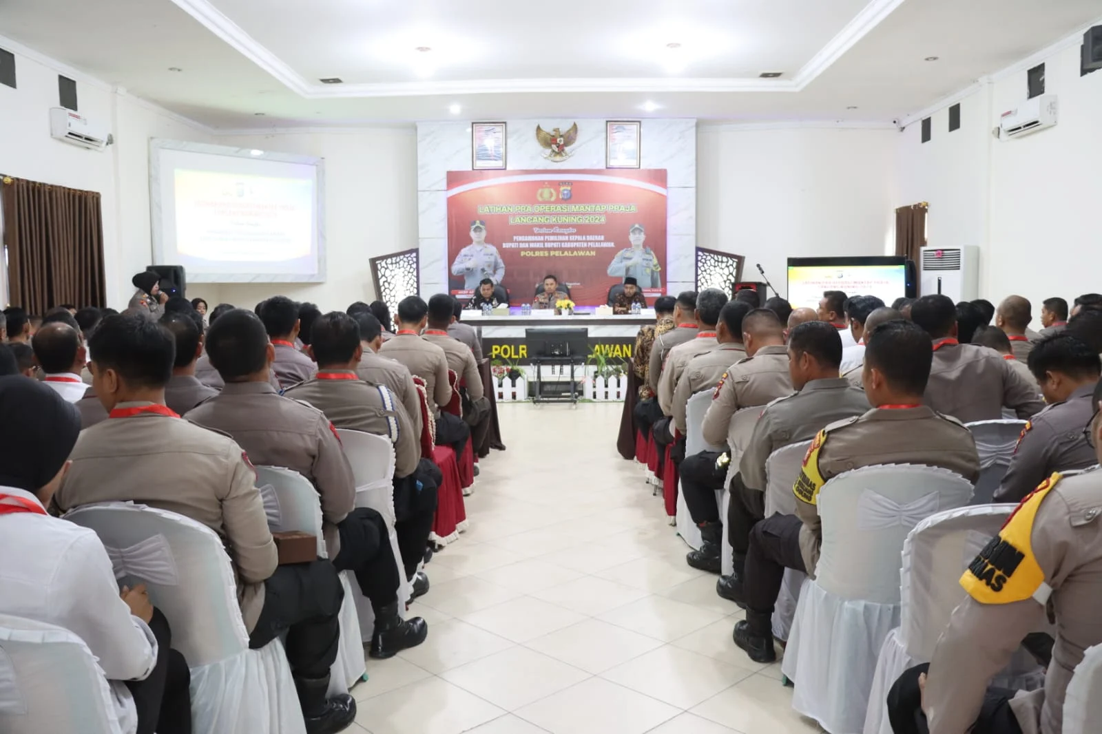 Pelalawan (Riau), SniperNew.Id – Jelang Penga­manan taha­pan Pilka­da Serentak Pemil­i­han Bupati, dan Wak­il Bupati Kabu­pat­en Pelalawan Tahun 2024. Kapol­res Pelalawan buka Lat Pra Operasi Man­tap Pra­ja Lan­cang Kun­ing tahun 2024 di aula Teluk Mer­an­ti Pol­res Pelalawan, Jumat, (9/8/2024).