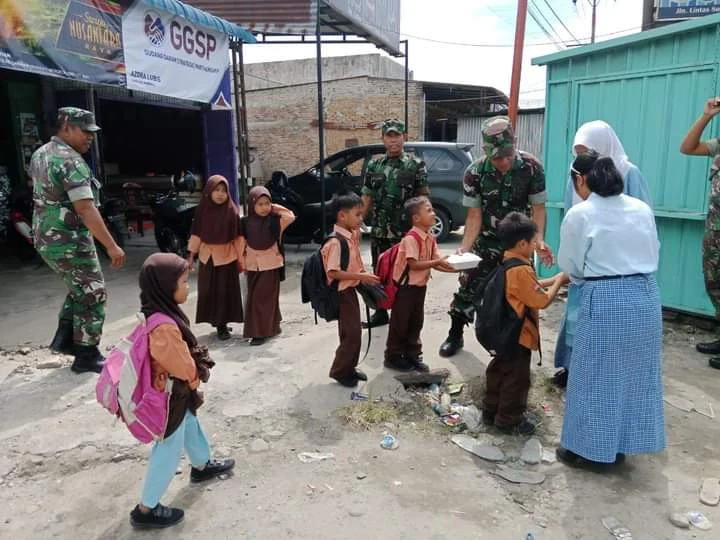Labura, snipernew.id - Koramil 07/Aek Kota Batu (AKB) Kodim 0209/Labuhanbatu melaksanakan kegiatan Jumat Berkah dengan membagikan 60 nasi kotak kepada masyarakat di Persimpangan Desa Simpang Marbau, Kecamatan Na IX‑X, Kabupaten Labuhanbatu Utara. Kegiatan ini dimulai pukul 10.30 WIB yang menargetkan abang becak, pejalan kaki, tukang ojek, serta warga kurang mampu di lokasi tersebut. Jum’at (25/10/2024)