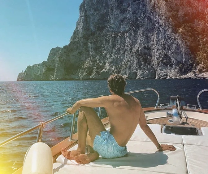 Dalam foto yang beredar luas, pria tersebut tampak duduk santai di kursi kayu, bertelanjang dada, dan menghadap laptopnya. Yang membuat pemandangan ini menarik adalah lokasi kerjanya: tepat di tepi tebing dengan panorama laut yang spektakuler, lengkap dengan batu-batu karang, villa eksotis, dan air sejernih kristal yang memantulkan cahaya matahari.