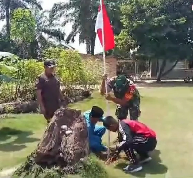 Dalam pelaksanaan sosialisasi dan himbauan pemasangan bendera jajaran Koramil juga didampingi pihak Kepolisian dalam membantu warga untuk mengibarkan bendera merah putih.(Gur-gur)