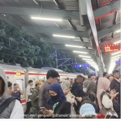 Dalam video yang dibagikan oleh akun @jalur5, yang mengutip sumber video dari @_mazrull, terlihat kerumunan penumpang memenuhi peron stasiun. Banyak dari mereka tampak cemas, lelah, dan sibuk memantau perkembangan situasi melalui ponsel masing-masing. Tulisan di layar juga menampilkan keterangan: