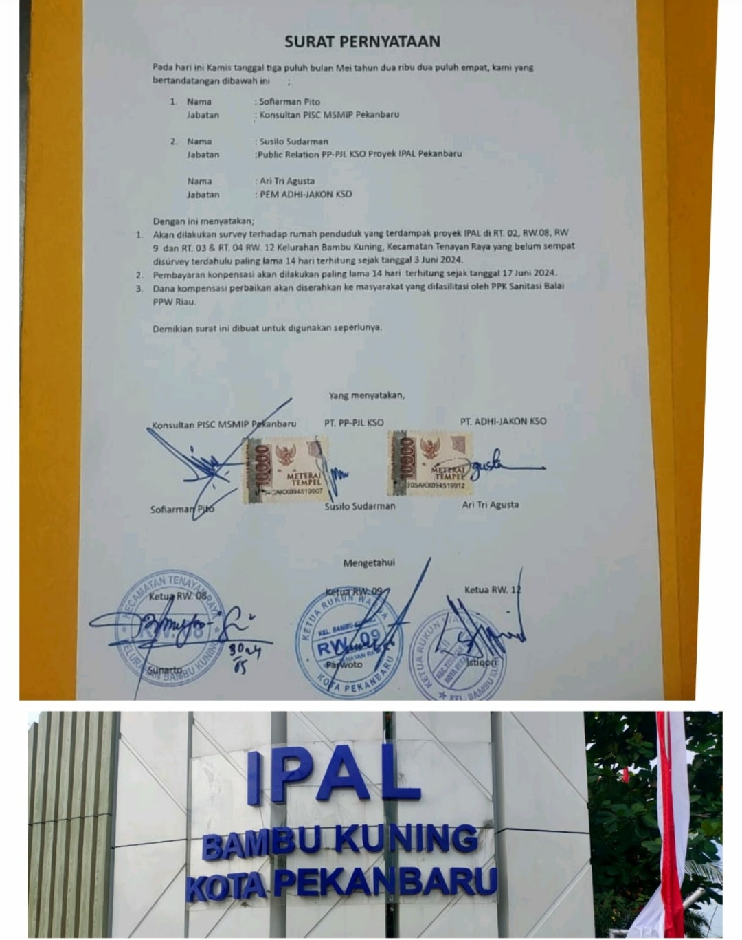 Mangkir pertanggungjawaban ganti rugi rumah warga di tiga RW yakni 08, 09, 12 Kelurahan Bambu kuning Kecamatan Tenayan raya, yang rusak, serta retak di sebabkan dampak pembangunan Ipal Bambu kuning Kecamatan Tenayan raya tertanggal 17 Juni 2024. Oleh konsorsium dari konsultan PISC MSMIP, PT PP — PJL KSO Susilo, PT ADHI JAKON KSO Ari Tri Agusta sebabkan kesabaran penantian panjang hampir 3 tahun memuncak.