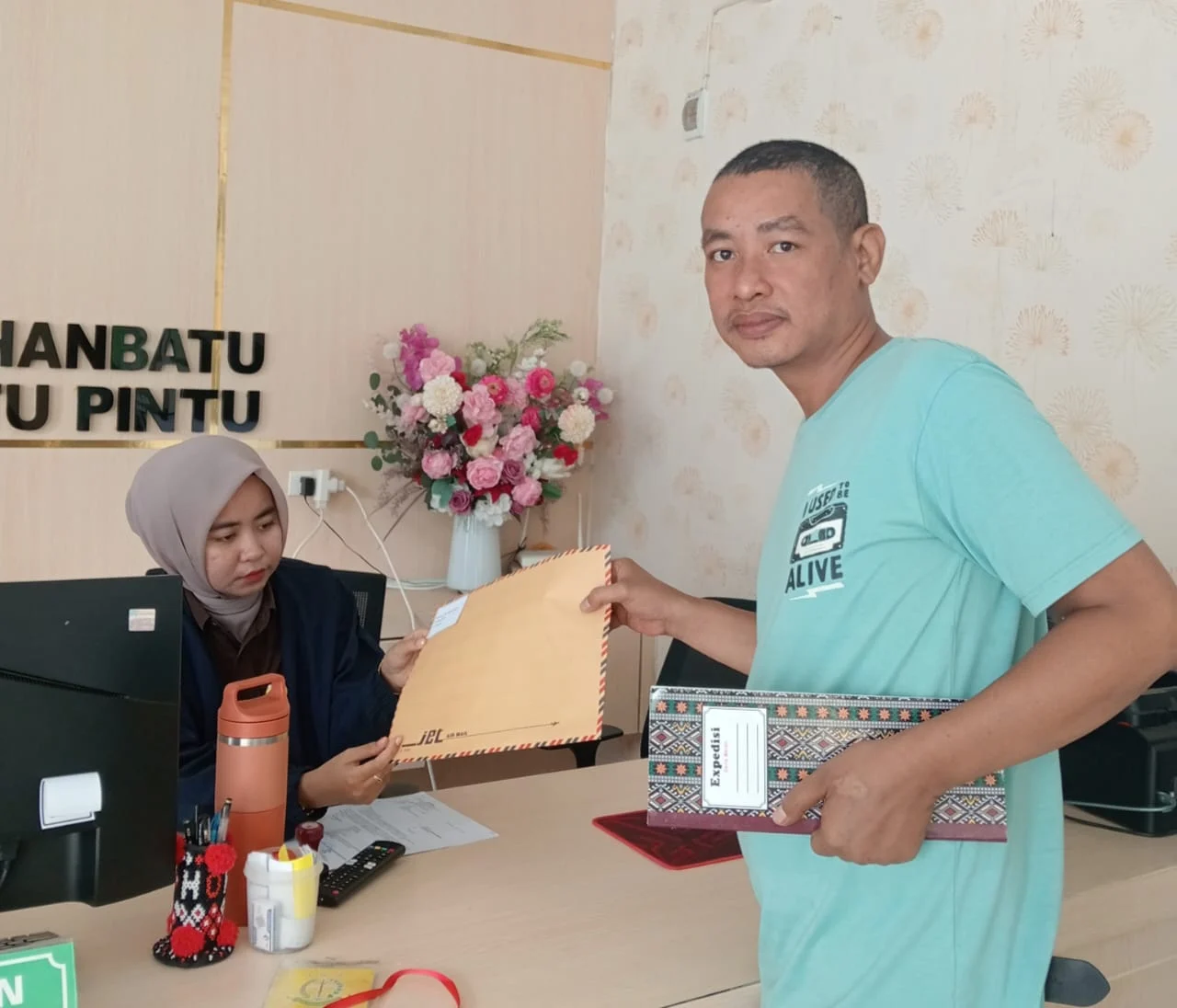 Abi Ridwan,SH saat menyerahkan laporannya ke PTSP kejaksaan Negeri Labuhanbatu