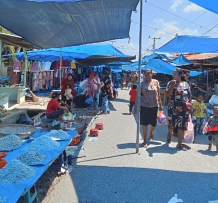 Labu­ra, SniperNew.id - Nam­pak para peda­gang dan pem­be­li tidak begi­tu ramai di pasar Pekan, di Desa Ujung Padang, Senin (24/06/ 2024).