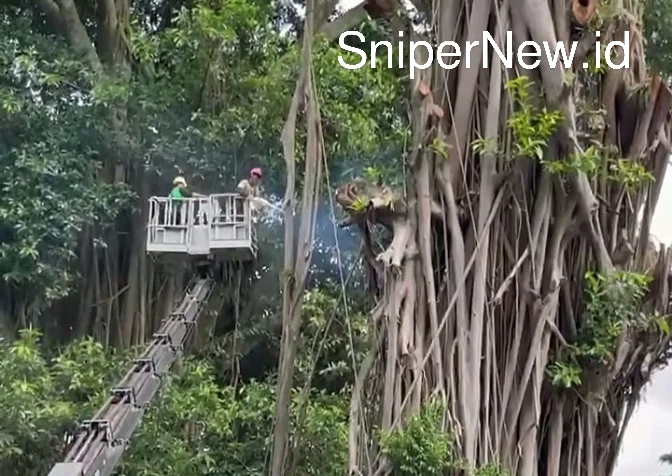 Bogor, SniperNew.id — Proses penebangan pohon Karet Kebo berukuran besar berlangsung di kawasan Balai Kota Bogor pada Kamis pagi. Berdasarkan unggahan akun media sosial bogor24update, penebangan dilakukan sejak pagi hari untuk mengantisipasi cuaca sore yang cenderung sering turun hujan di wilayah Bogor.