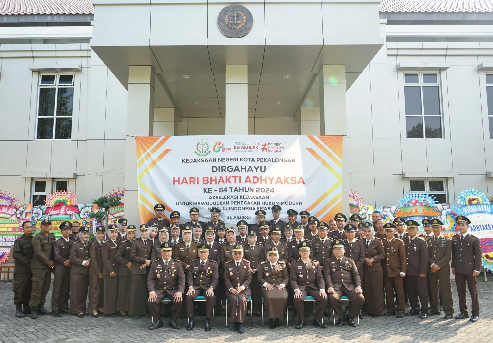Pekalongan, SniperNew.id - Kejaksaan Negeri Kota Pekalongan menggelar Upacara Peringatan Hari Bhakti Adhyaksa Ke-64 Tahun 2024 yang berlangsung dengan baik dan sukses serta dilaksanakan secara sederhana namun penuh khidmat, upacara yang digelar di halaman kantor Kejaksaan Negeri Kota Pekalongan Jl. Jaksa Agung R. Soerprapto No. 5 Podosugih Kecamatan Pekalongan Barat Kota Pekalongan pada hari Senin tanggal 22 Juli 2024.