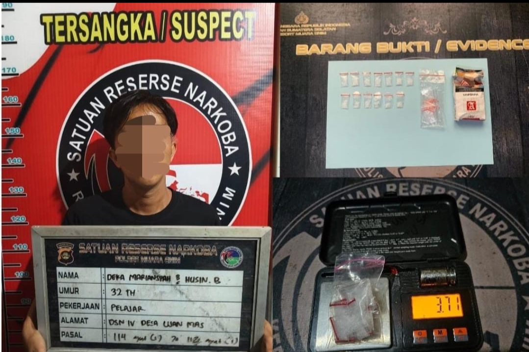 Pelaku berinisial DM (32) warga Desa Ujan Mas Baru, beserta barang buktinya kemudian dibawa ke kantor Satuan Reserse Narkoba Polres Muara Enim untuk dilakukan proses penyidikan lebih lanjut, tuturnya.