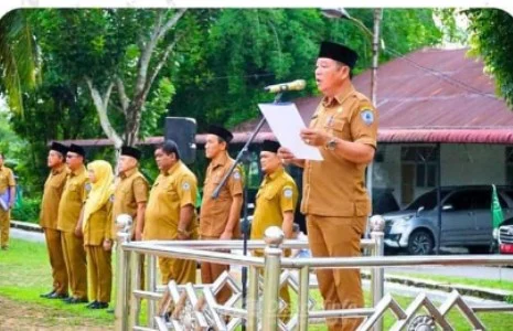 Terlihat hadir pada apel gabungan, Asisten III Zaid Harahap, Inspektur Ahlan Ritonga, Kaban Litbang Zuhri, Kadis DPPPA Tuti Noprida Ritonga, Kadis PMD Abdi Jaya Pohan dan seluruh Aparatur Sipil Negara di Lingkungan Pemkab Labuhanbatu. (Rustina)
