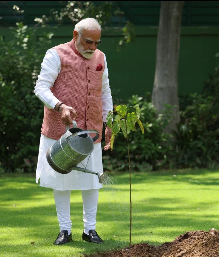 Perdana Menteri India menanam pohon Sindoor sebagai bagian dari peringatan Hari Lingkungan Hidup Sedunia dan untuk menghormati peran heroik perempuan Kutch dalam sejarah militer India.