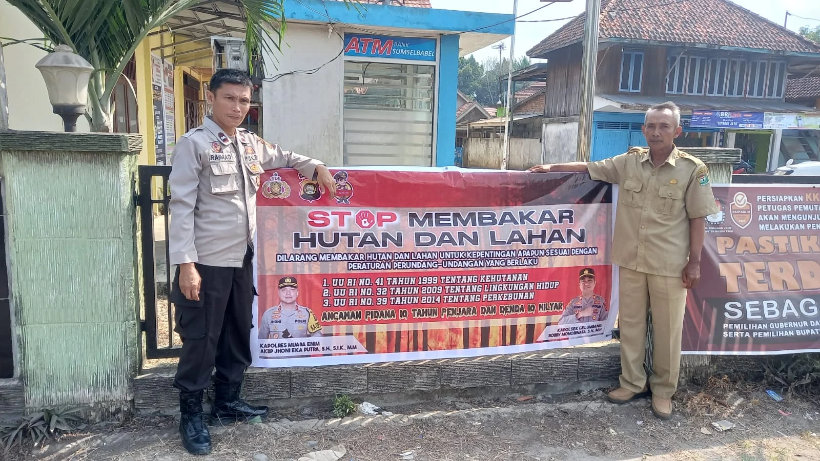 Polres Muara Enim dan Polsek Jajaran Gencar Sosialisasikan Bahaya Karhutla dengan Pemasangan Spanduk dan Maklumat Kapolda Sumsel