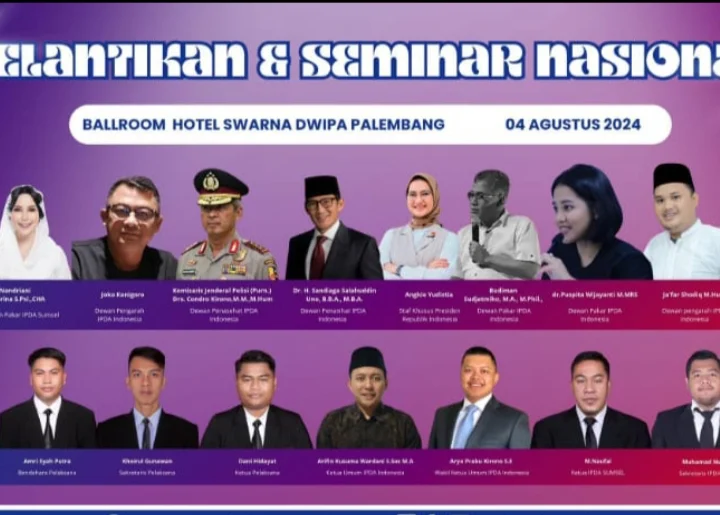 Palembang, SniperNew.id - Pimpinan Wilayah (PW) Ikatan Pemuda Penggerak Desa Indonesia (IPDA) Sumatera Selatan (Sumsel) melaksanakan Pelantikan Kepengurusan dan Seminar Nasional di Ballroom Hotel Swarna Dwipa Palembang, Minggu (04/08/2024).