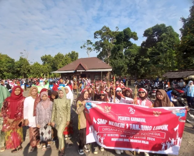 Peserta karnaval dilepas langsung oleh Fikril Hakim sebagai Camat Tanjung lubuk HUT RI ke – 79.