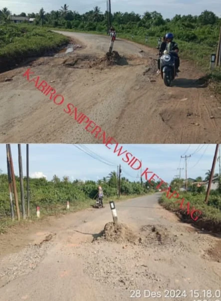 Keta­pang, SniperNew.id — War­ga masyarakat pen­gu­na jalan men­geluhkan ruas jalan Keca­matan Matan Hilir Sela­tan yang sam­pai saat ini masih rusak belum kun­jung diper­bai­ki oleh pemer­in­tah daer­ah kabu­pat­en Keta­pang, Provin­si Kali­man­tan Barat, Sab­tu (28/12/2024).