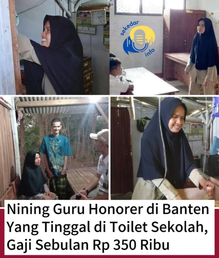 Nining dan suami terpaksa memodifikasi bagian toilet sekolah menjadi tempat tinggal darurat setelah rumah mereka roboh akibat rapuh dan tak layak huni. Gaji Nining yang hanya Rp 350 ribu per bulan sebagai guru honorer tentu tidak cukup untuk menyewa rumah atau merenovasi tempat tinggal lama mereka.