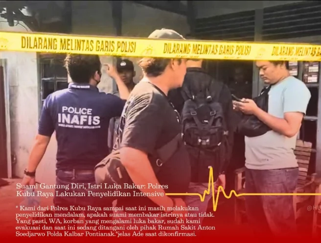 Kapolres Kubu Raya, AKBP Wahyu Jati Wibowo, S.I.K., S.H., M.H., melalui Kasubsi Penmas Polres Kubu Raya, AIPTU Ade membenarkan adanya peristiwa seorang pria berinisial SO (45) yang meninggal dunia dengan cara gantung diri. SO adalah suami dari wanita berinisial WA (42) yang saat ini mendapatkan perawatan medis di Rumah Sakit Anton Soejarwo Pontianak secara intensife lantaran luka bakar yang dialaminya.