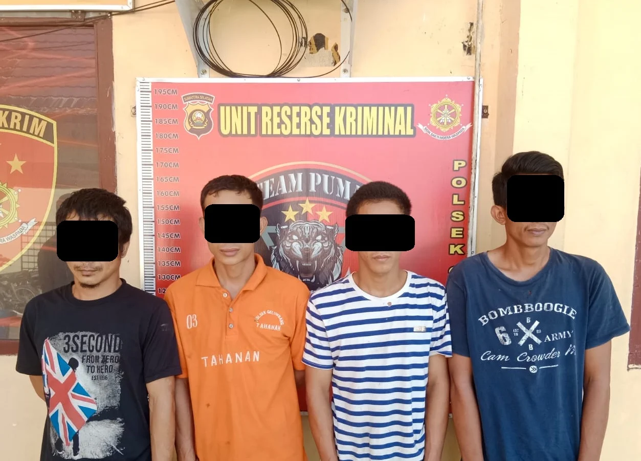 Empat tersangka berhasil diamankan, yaitu NR (28), warga Desa Segayam, Kecamatan Gelumbang, Kabupaten Muara Enim, MM (36), warga Desa Segayam, Kecamatan Gelumbang, Kabupaten Muara Enim, R (21), warga Desa Lorok, Kecamatan Indralaya Utara, Kabupaten Ogan Ilir dan D (32), warga Desa Lorok, Kecamatan Indralaya Utara, Kabupaten Ogan Ilir.