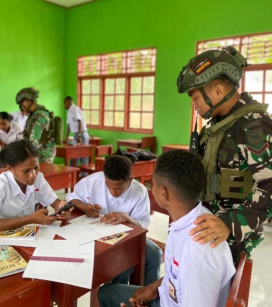 Tam­braw, SniperNew.id – Sat­gas Pam­tas RI-PNG Kewil­aya­han Papua Barat Daya Yonif 762/VYS Pos Yem­bun mem­ban­tu guru di SMK N 01 Yem­bun seba­gai tena­ga pen­didik men­ga­jarkan materi matem­ati­ka ser­ta sekali­gus men­ga­jarkan wawasan kebangsaan, yang dimana bisa men­jadikan gen­erasi penerus bangsa yang cer­das dan berkom­pe­ten sehing­ga bergu­na bagi nusa dan bangsa yang bera­da di Dis­trik Yem­bun, Kabu­pat­en Tam­braw, Rabu (04/09/2024).