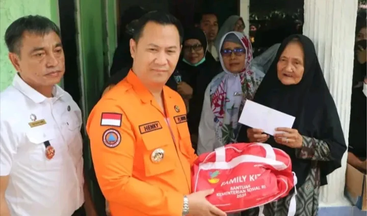 Pj. Bupati Muara Enim, H. Henky Putrawan, S.Pt., M.Si., M.M., meninjau dan menyerahkan bantuan kepada korban dengan didampingi Kepala OPD terkait, Camat dan Lurah setempat.