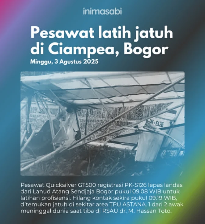 Bogor, SniperNew.id - Minggu 03 Agustus 2025 Kabar duka menyelimuti dunia penerbangan Indonesia. Sebuah pesawat ringan jenis Quicksilver GT500 dengan registrasi PK-S126 mengalami kecelakaan tragis saat melakukan latihan profisiensi. Pesawat tersebut lepas landas dari Lanud Atang Sendjaja, Bogor pada pukul 09.08 WIB dan hilang kontak sekitar pukul 09.19 WIB.