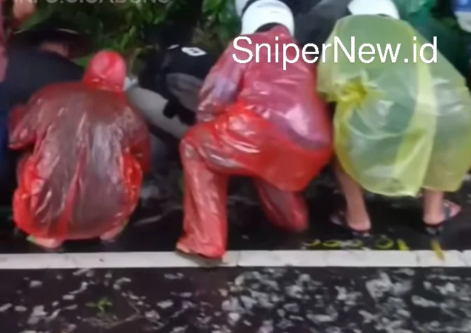 Dalam video berdurasi sekitar 30 detik yang menyertai unggahan tersebut, terlihat sejumlah warga mengenakan jas hujan warna-warni sedang berjongkok di tepi jalan, tampak sibuk mengumpulkan udang yang berserakan di aspal. Beberapa warga terlihat membawa ember dan karung, sementara sebagian lain membantu petugas menyingkirkan puing dan memperlancar arus lalu lintas yang sempat terhenti.