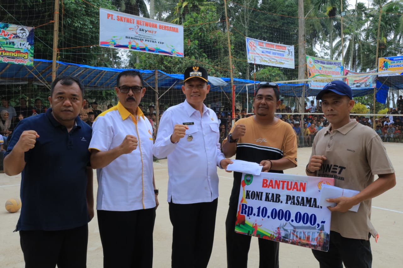 Pada kesempatan tersebut, sebagai rasa perhatian terhadap pengembangan olah raga bola Voly khususnya , Sabar AS secara pribadi menyerahkan bantuan terhadap panitia pelaksana pertandingan untuk uang pembinaan sebesar 10 juta rupiah, ( Abdi Novirta )