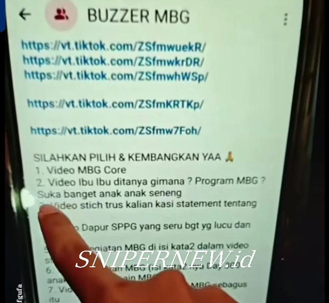 Unggahan tersebut menyebutkan adanya satu grup dengan satu perintah yang sama, di mana para anggota diminta membuat konten tentang program MBG dengan narasi “baik-baik saja”.