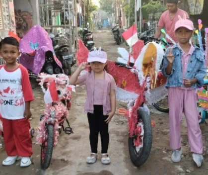 Warga antusias menghias sepeda anak — anaknya untuk memeriahkan hari kemerdekaan Republik Indonesia ini, yang beraneka bentuk seperti burung, teng, angsa dan lain lainnya.